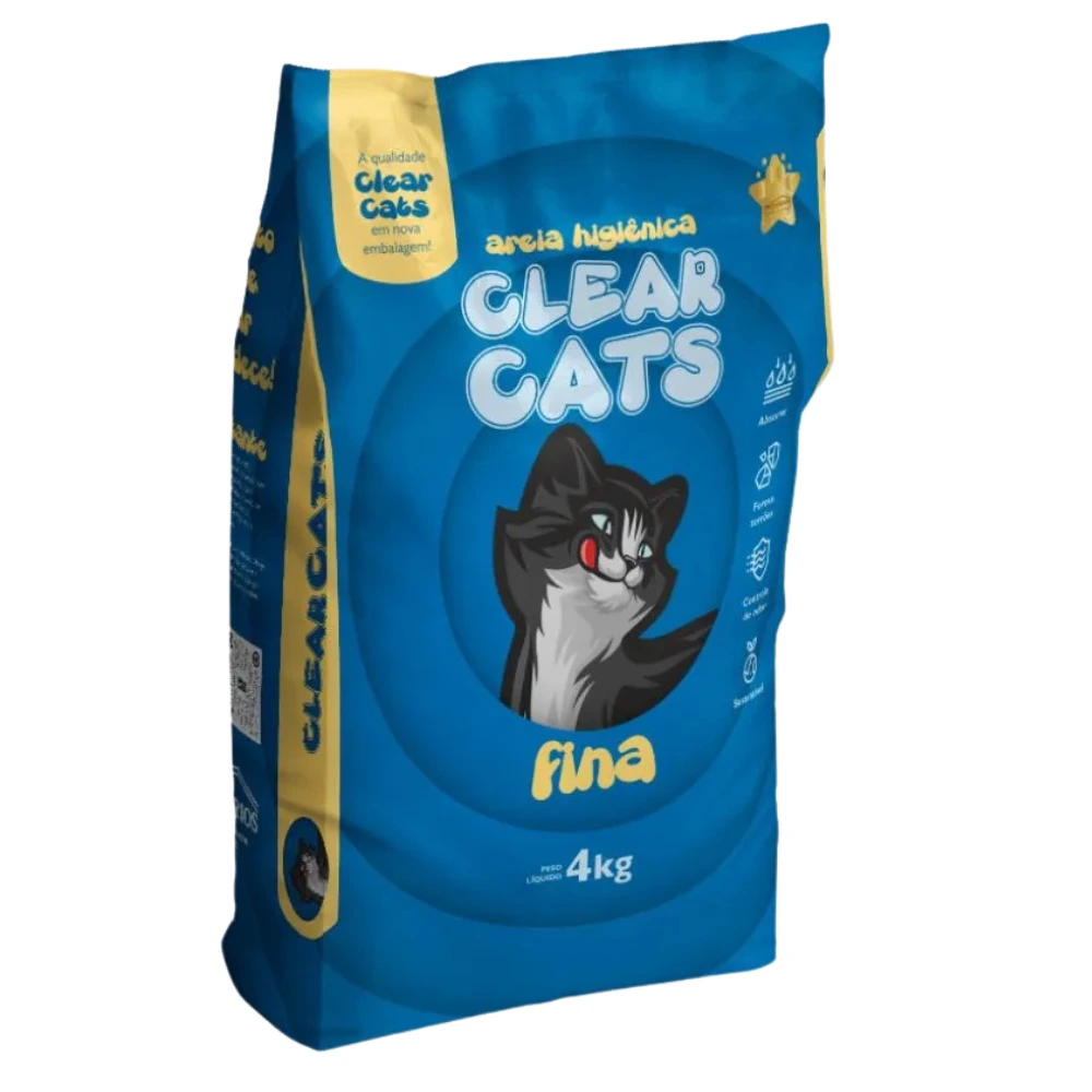 Areia Higiênica Fina para Gatos Clear Cats 4kg a 20Kg